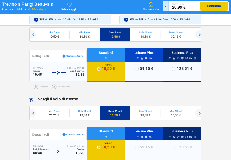 Guarda ad esempio questi da Treviso per Parigi Beauvais,